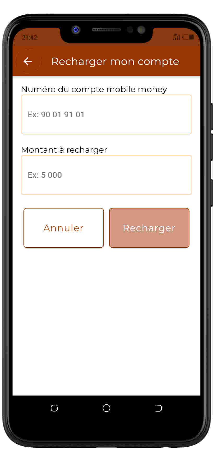 Rechargez votre compte auprès de nos partenaires (AL IZZA) ou par Mobile Money (Airtel Money, Zamani Cash, Flooz).