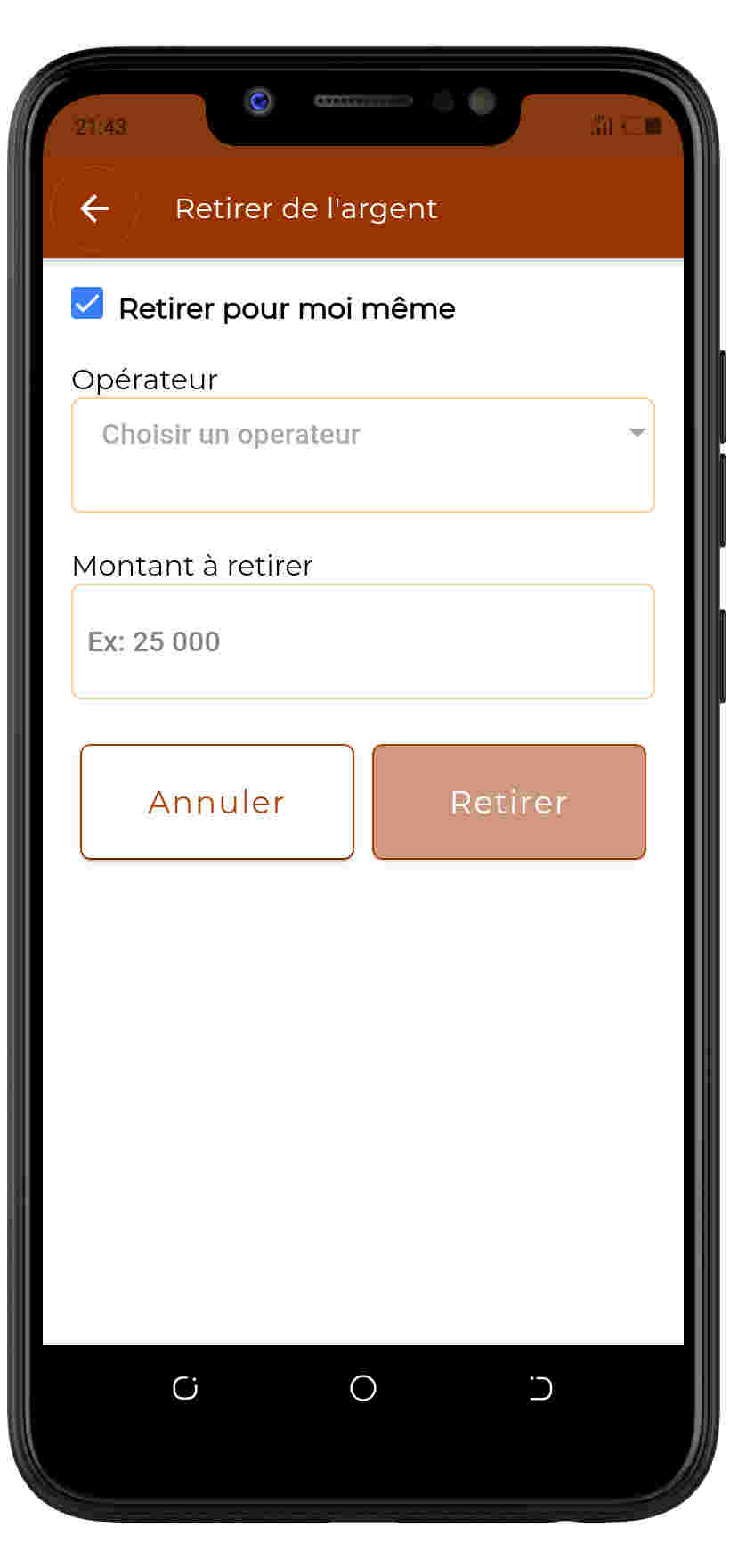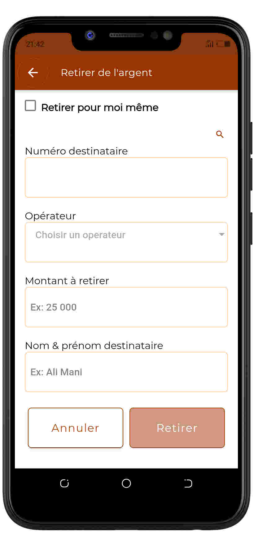 Retirez votre argent en espèces (cash) auprès de nos guichets partenaires.
